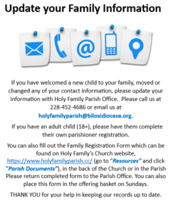 Holy Family sends emails and texts for parishioners to stay up to date with what is happening in our Parish through Flocknote.