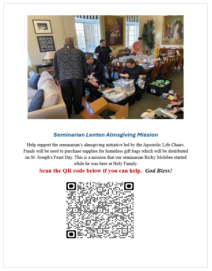 Seminarian Lenten Mission Post category:Uncategorized Post author:ingramswebdesign Post published:March 3, 2026 Read more articles Previous PostOur Mother of Mercy Lenten Mission – March 9 Next PostFr. Mike’s Bible Journey