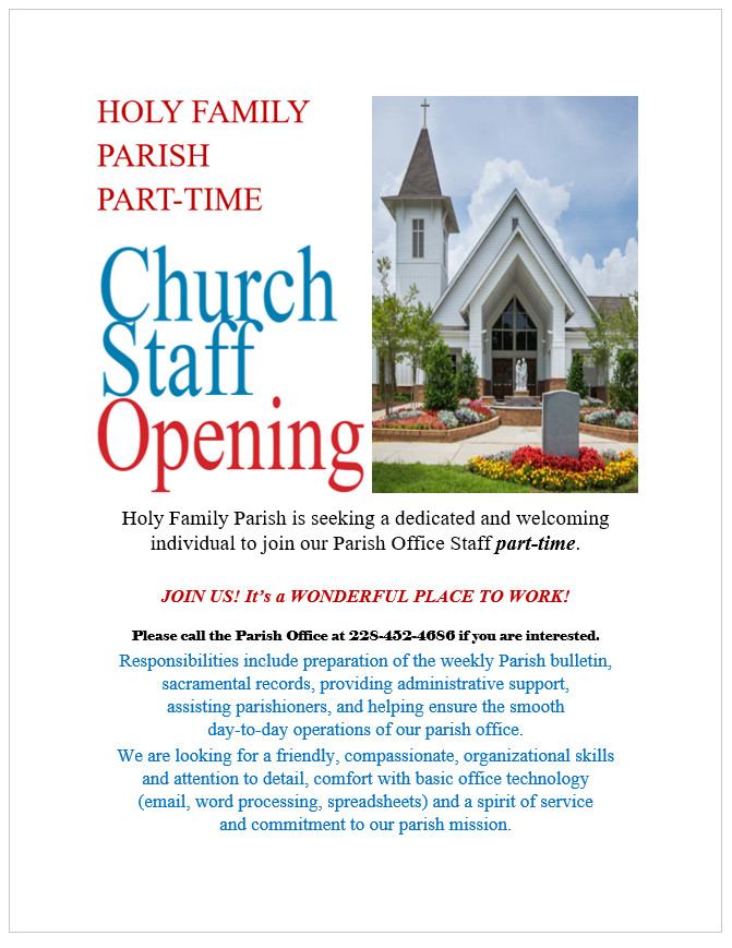 Church Staff Opening Post category:Uncategorized Post author:ingramswebdesign Post published:March 18, 2026 Read more articles Previous PostHoly Week Ministry Schedule